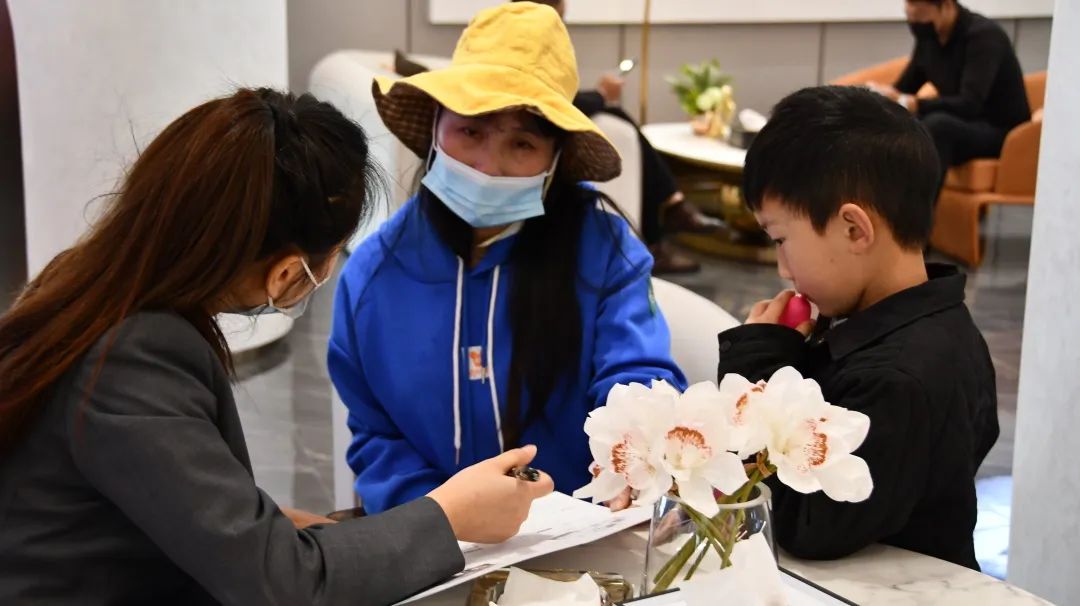 在工作人員熱情細致的指引下,簽約區(qū)連續(xù)不斷地傳出選購成功的喜訊。工作人員耐心地指導客戶填寫資料和辦理手續(xù),整個過程都在緊張有序地進行著。