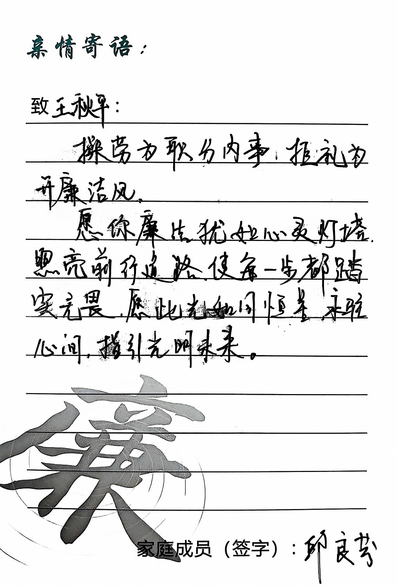 為深入學(xué)習(xí)黨的二十大精神,貫徹落實(shí)習(xí)近平總書(shū)記關(guān)于注重家庭家教家風(fēng)建設(shè)的重要論述,營(yíng)造公司崇廉、尚廉、踐廉、助廉的良好氛圍,城投公司組織開(kāi)展了“家滿清風(fēng)·廉潤(rùn)城投”廉潔文化活動(dòng);顒(dòng)開(kāi)展以來(lái),共征集廉政寄語(yǔ)210余條。經(jīng)各部門(mén)、子公司推薦,城投公司相關(guān)部門(mén)審核,評(píng)選出優(yōu)秀廉潔寄語(yǔ)43條,F(xiàn)將優(yōu)秀廉政寄語(yǔ)分批次進(jìn)行展播,快來(lái)一起欣賞吧!