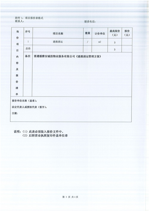 文曲新座建渣清運(yùn)詢價(jià)函