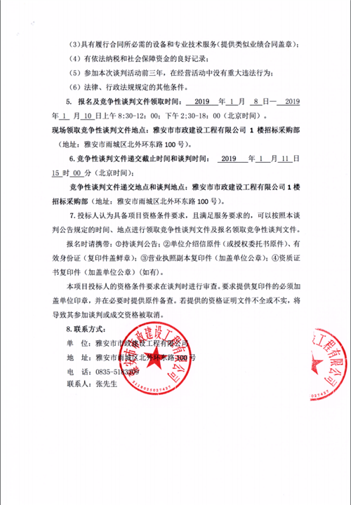 雅安市城市道路抑塵治理試點項目進(jìn)行競爭性談判公告(市政公司)