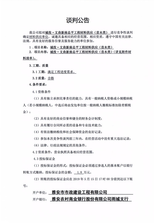 城投·文曲新座總平工程材料供應(yīng)(苗木類(lèi))競(jìng)爭(zhēng)性談判公告