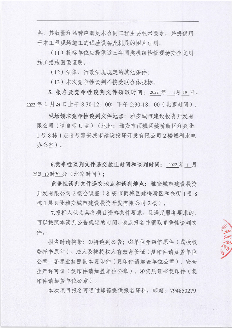 雅安城利水電公司2021年度水輪發(fā)電機(jī)檢修工程競(jìng)爭(zhēng)性談判公告