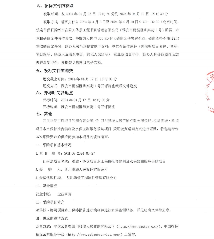 雅城·格調(diào)項目水土保持報告編制及水保監(jiān)測服務采購項目競爭性磋商公告
