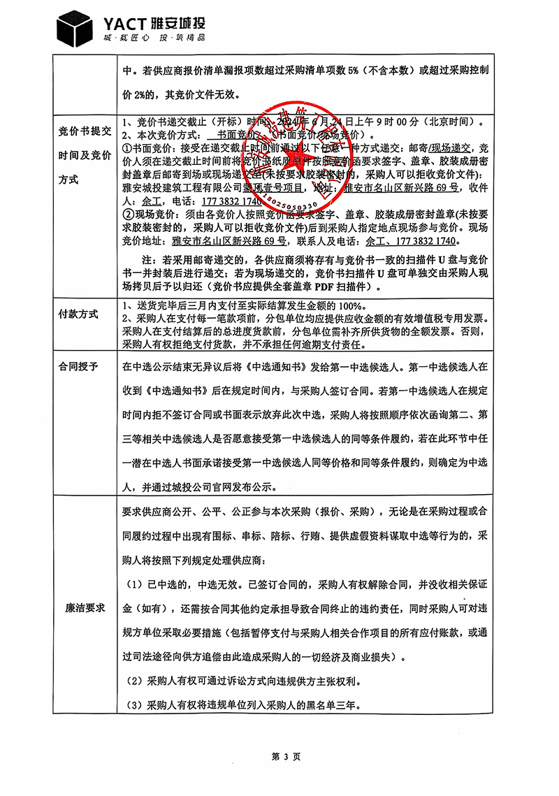 蒙頂壹號項(xiàng)目穿孔水泥板裝修材料采購(第二次)競價函