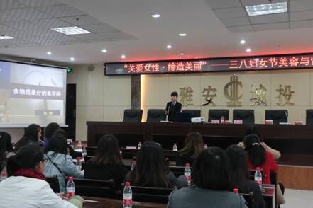 為慶!叭恕眹H勞動(dòng)?jì)D女節(jié),提高女性自我審美和保健水平,展示新時(shí)代女性積極向上的精神風(fēng)貌,3月8日上午,城投公司、雅投公司、煙草公司聯(lián)合舉辦三八國際勞動(dòng)?jì)D女節(jié)美容與營養(yǎng)講座,專題對(duì)食物營養(yǎng)素、水果蔬菜、酸奶三方面進(jìn)行細(xì)致講解。