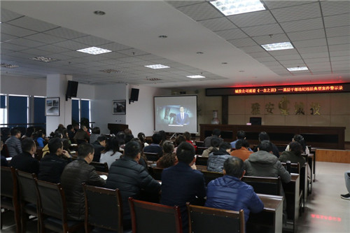 為持續(xù)深化“不忘初心、牢記使命”主題教育,營造濃厚的清正廉潔企業(yè)氛圍,11月22日,城投公司組織觀看主題教育警示教育片《一念之誤》。公司部門主管和子公司副部長以下人員約80人參加。