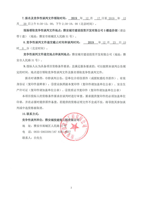 雅安市建安公司棚改區(qū)改造安置房項(xiàng)目主體檢測(cè)服務(wù)競(jìng)爭(zhēng)性談判公告