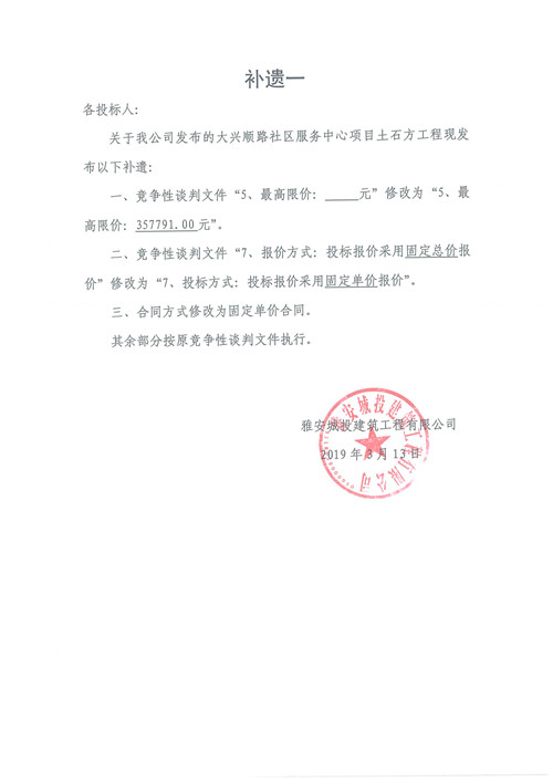 大興順路社區(qū)服務(wù)中心土方工程競爭性談判公告補(bǔ)遺