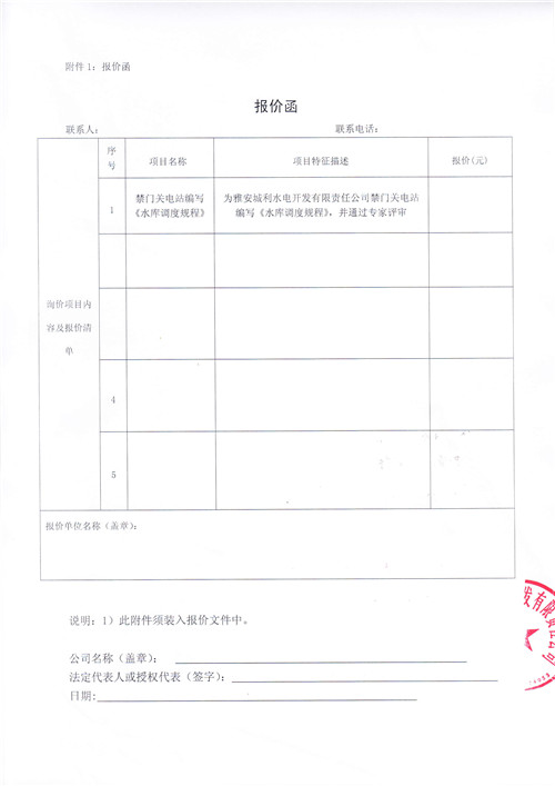 雅安城利水電開發(fā)有限責任公司禁門關電站編寫《水庫調(diào)度規(guī)程》競爭性談判公告