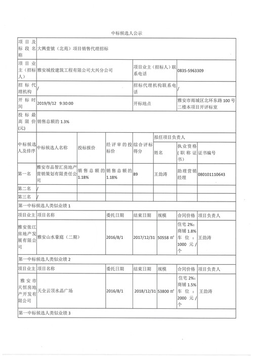 大興壹號(北苑)項目銷售代理招標(biāo)中標(biāo)候選人公示