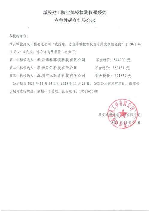 城投建工防塵降噪檢測儀器采購競爭性磋商結果公示