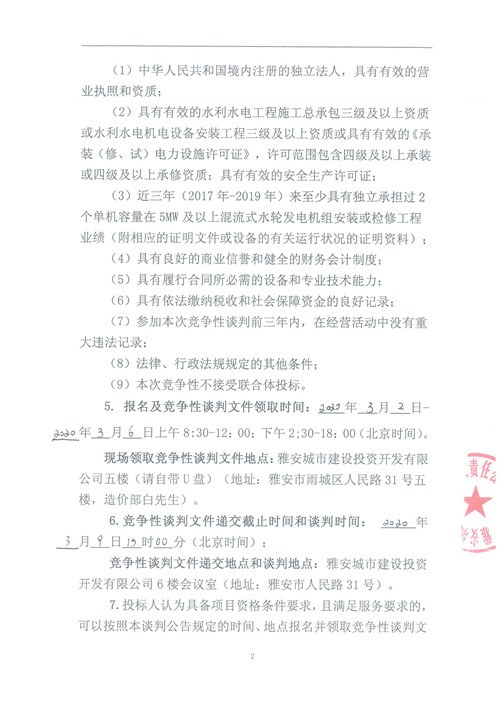 城利水電公司羅家灣電站1#水輪發(fā)電機組A級檢修工程競爭性談判公告