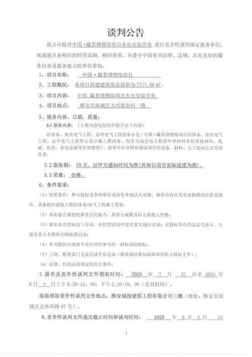 城投建工公司中國·藏茶博物館項(xiàng)目水電安裝勞務(wù)競爭性談判公告