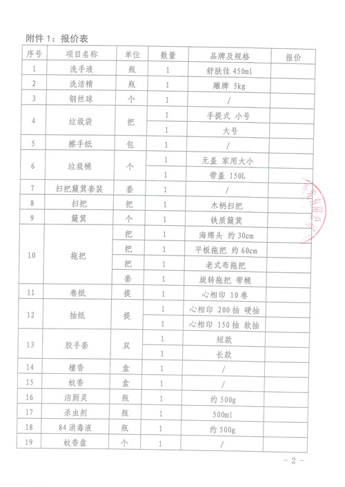 雅安城市建設(shè)投資開發(fā)有限公司清潔用品詢價(jià)函