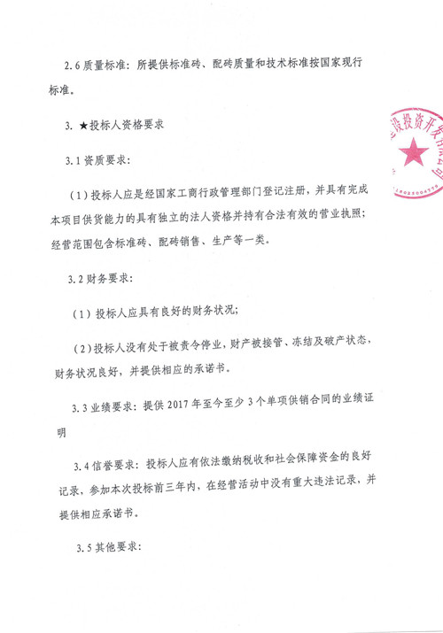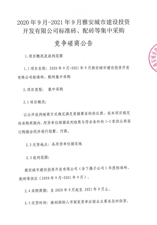 2020年9月-2021年9月雅安城市建設投資開發(fā)有限公司標準磚、配磚等集中采購競爭磋商公告