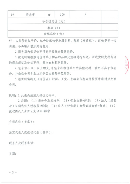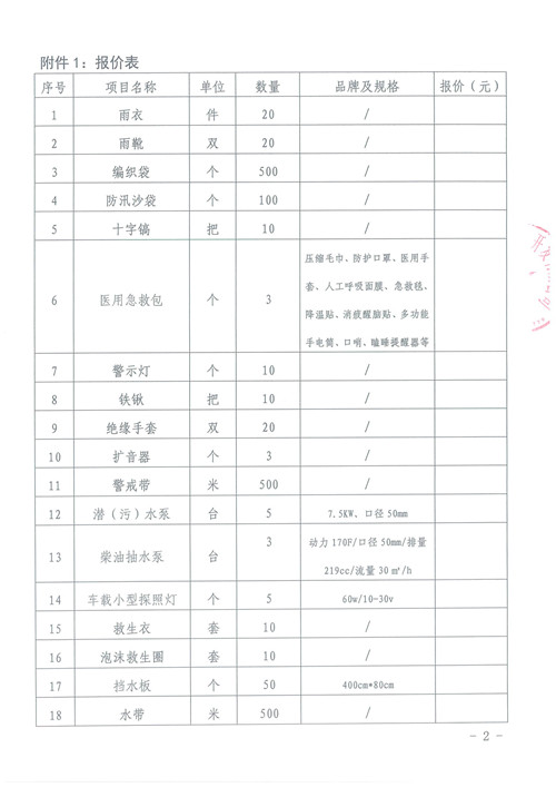 雅安城市建設(shè)投資開發(fā)有限公司防汛應(yīng)急物資詢價函