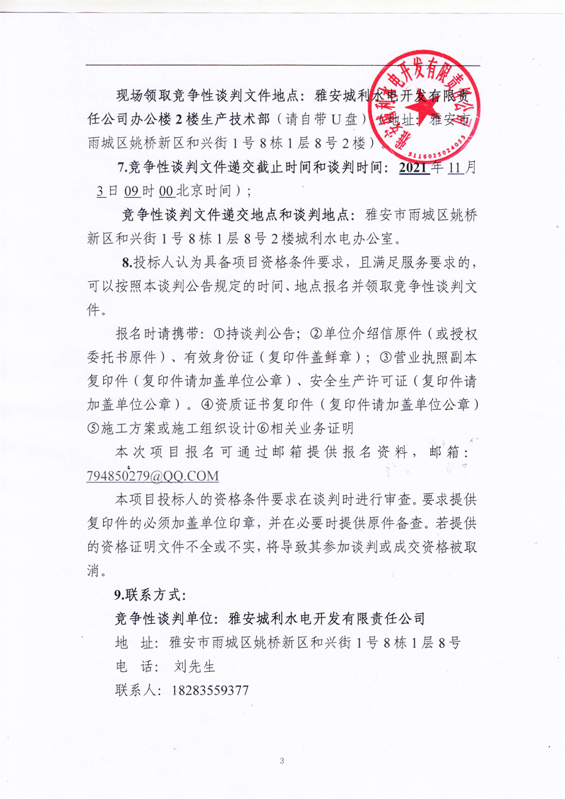 城利水電公司35kv禁飛II回滑坡?lián)岆U恢復(fù)工程競爭性談判