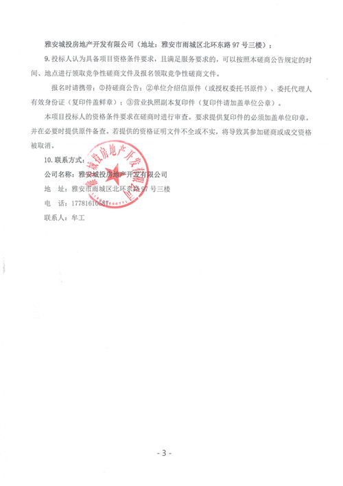 雅安城投房地產(chǎn)開(kāi)發(fā)有限公司城投·文曲新座樓頂拆除及恢復(fù)工程(第二次)競(jìng)爭(zhēng)性磋商公告