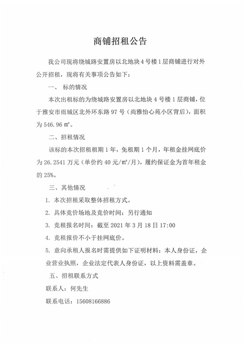 商鋪招租公告