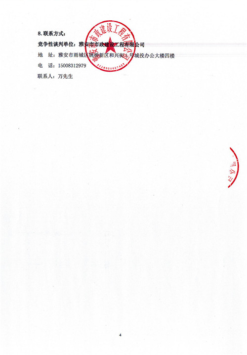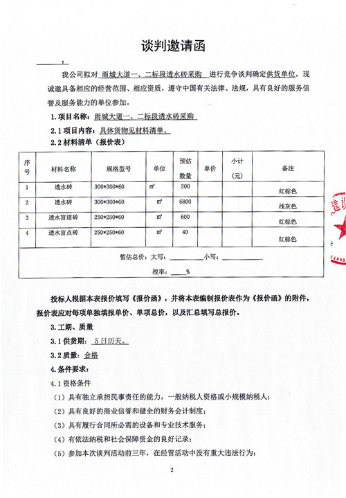 市政公司雨城大道一、二標段透水磚采購競爭性談判公告