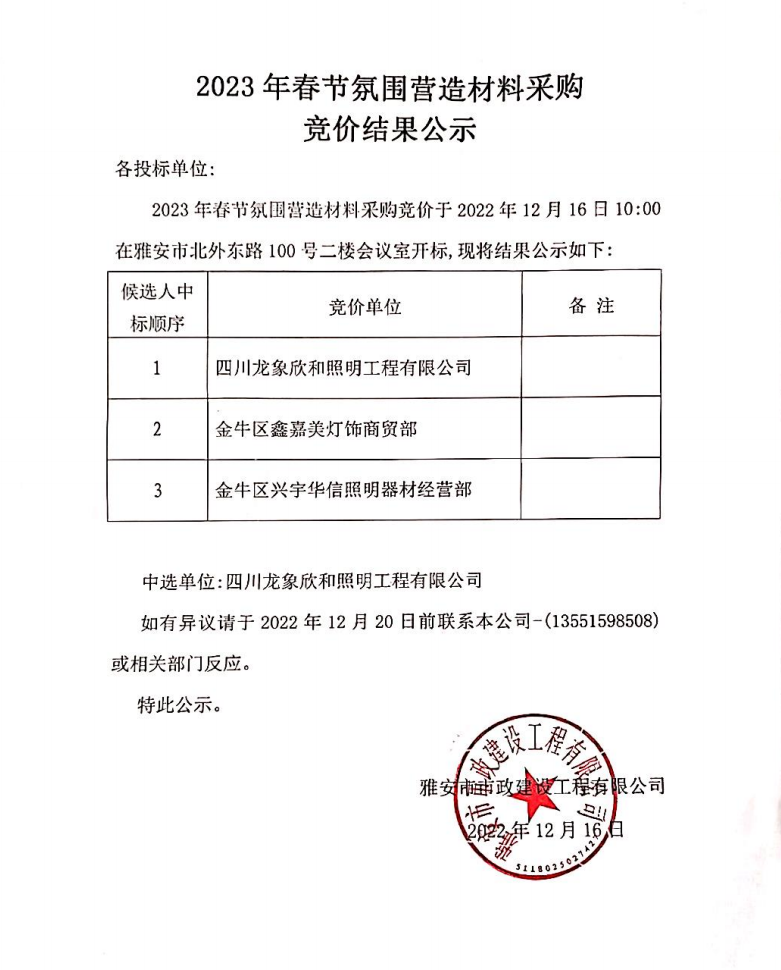 2023年春節(jié)氛圍營造材料采購競(jìng)價(jià)結(jié)果公示