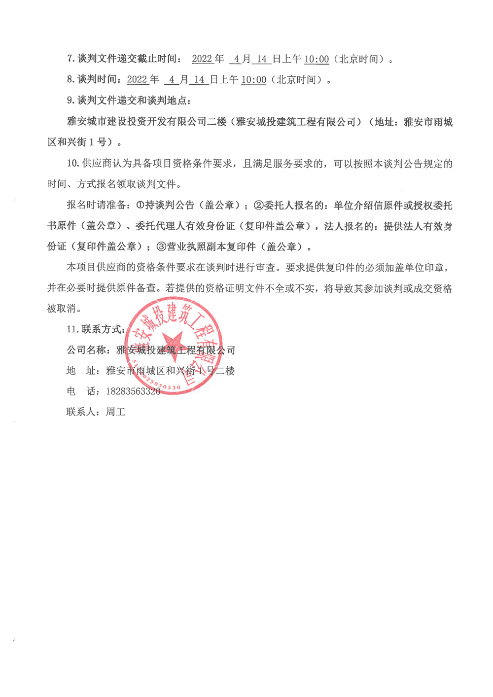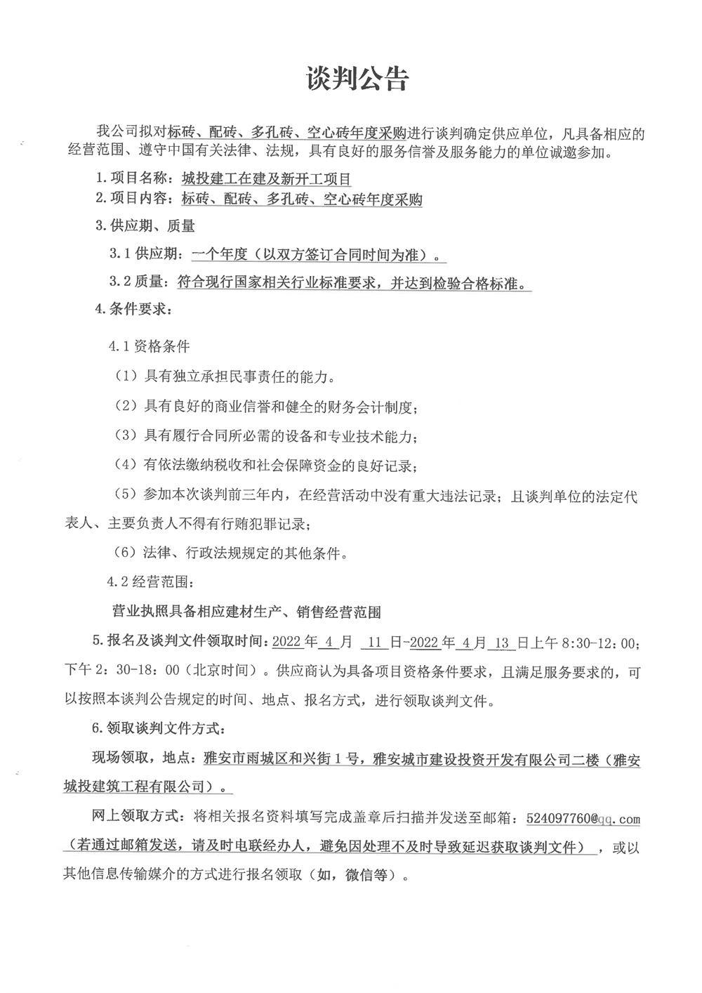 城投建工標磚、配磚、多孔磚、空心磚年度采購競爭性談判公告