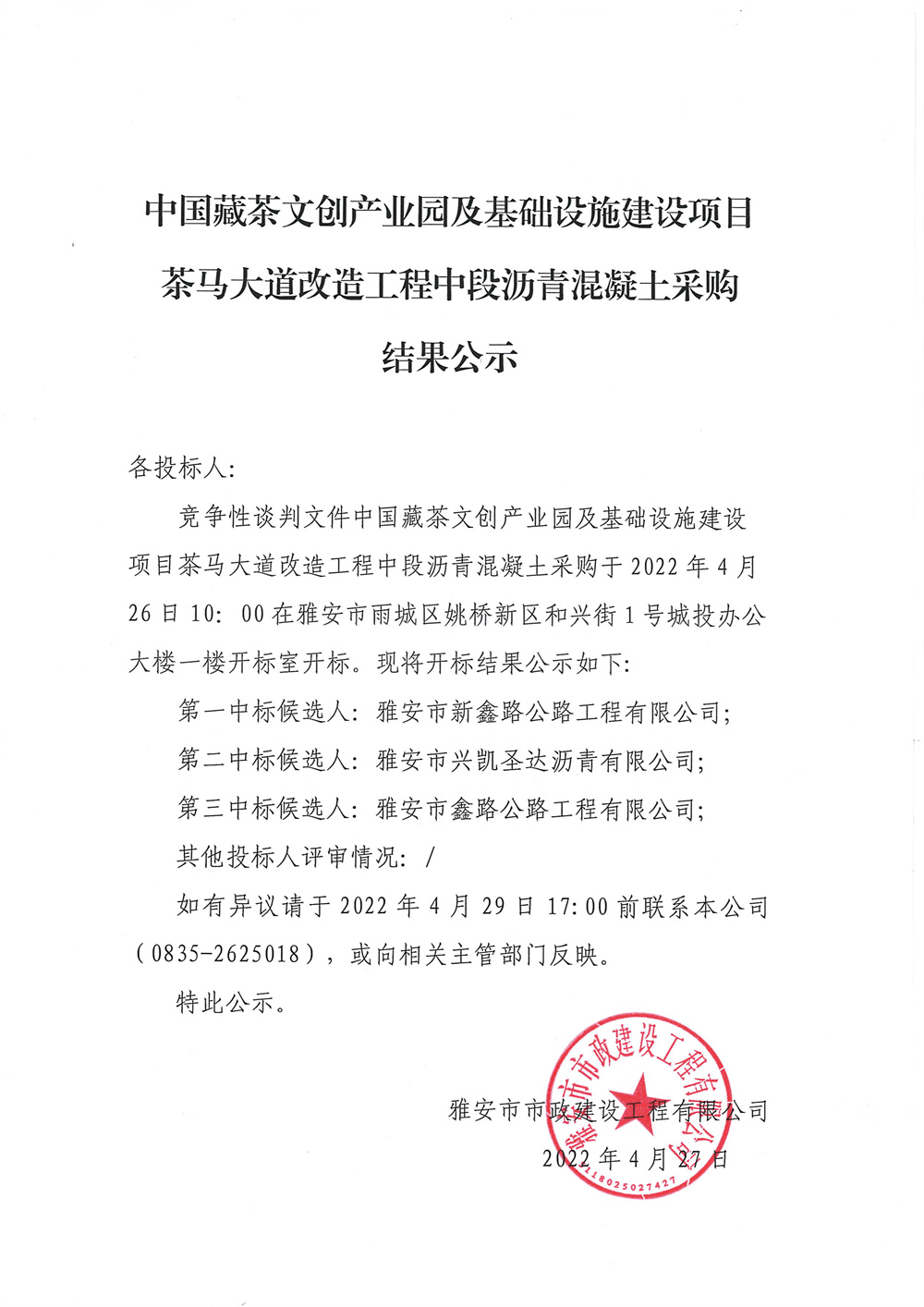 中國藏茶文創(chuàng)產業(yè)園及基礎設施建設項目茶馬大道改造工程中段瀝青采購競爭性談判結果公示