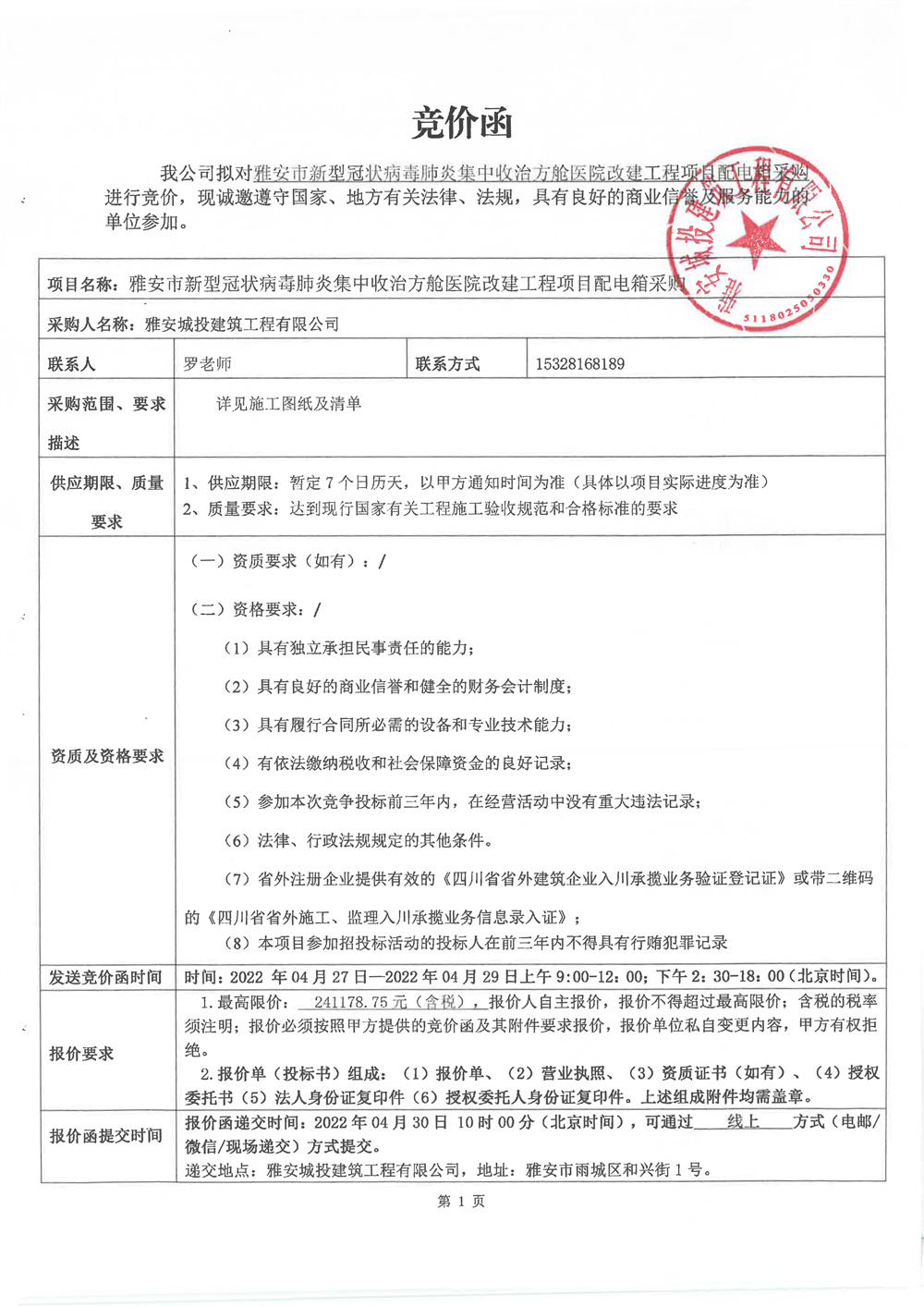 雅安市新型冠狀病毒肺炎集中收治方艙醫(yī)院改建工程項(xiàng)目配電箱采購