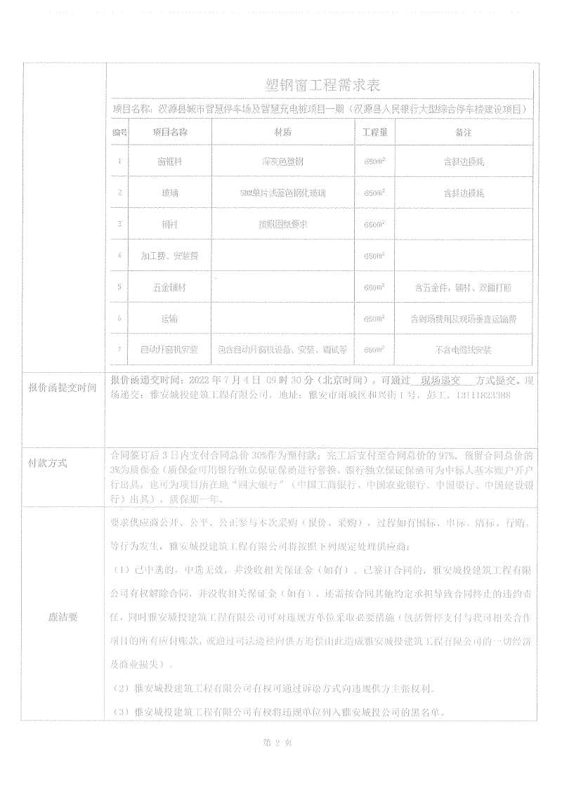 漢源縣城市智慧停車場及智慧充電樁項目一期漢源縣城人民銀行大型綜合樓停車樓建設(shè)項目塑鋼窗采購競價公告