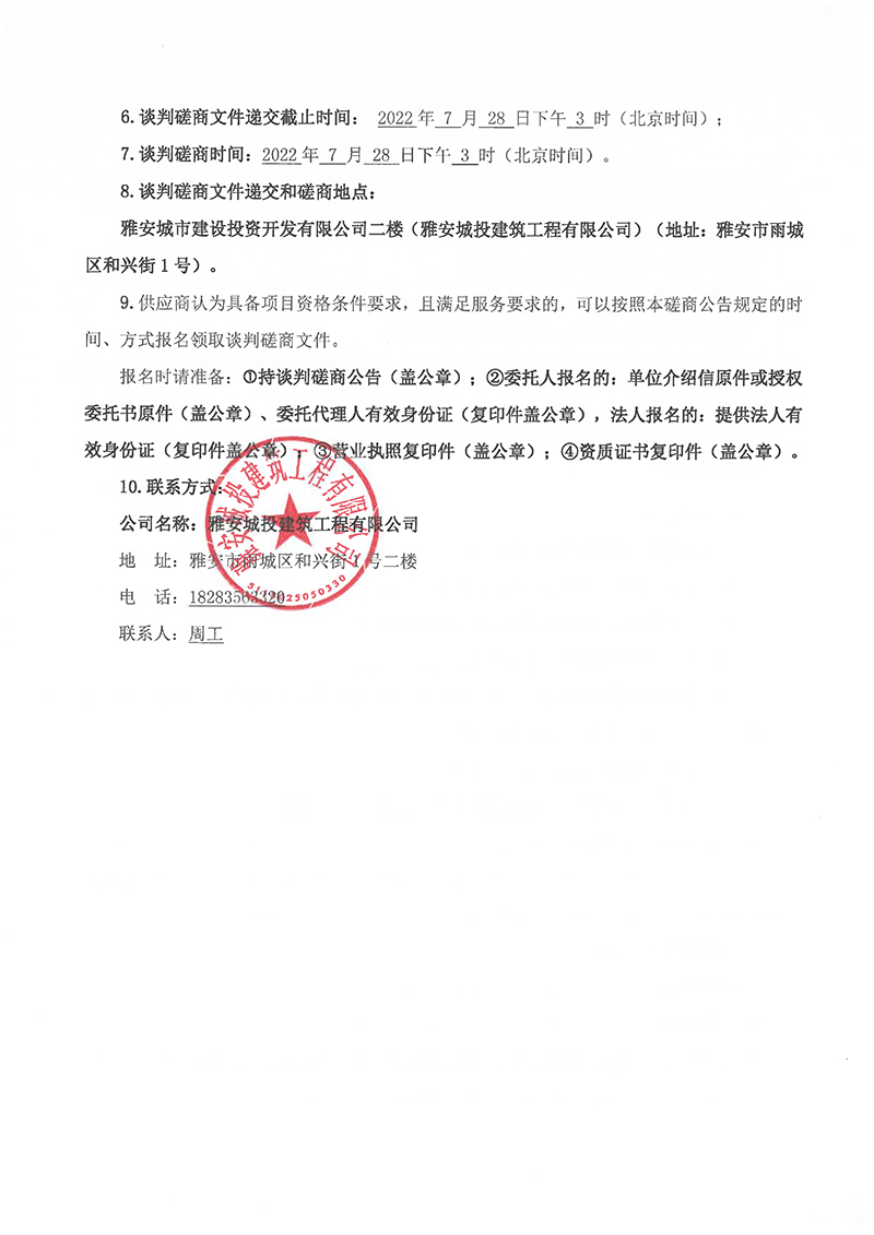 蒙頂壹號項目吊籃租賃談判磋商公告