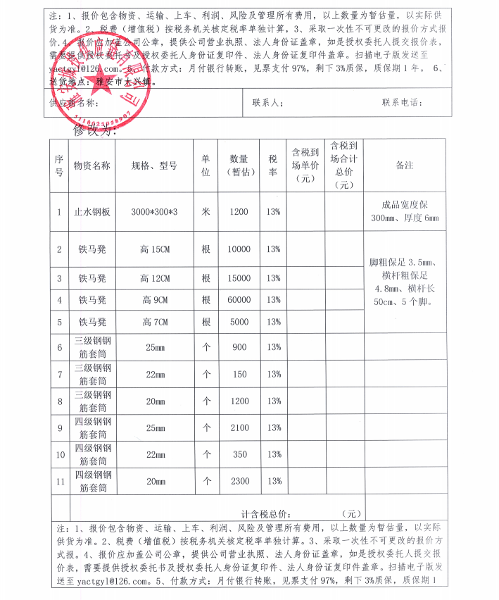 雅州壹號院項目止水鋼板、鐵馬凳、鋼筋套筒材料采購補(bǔ)遺(一)