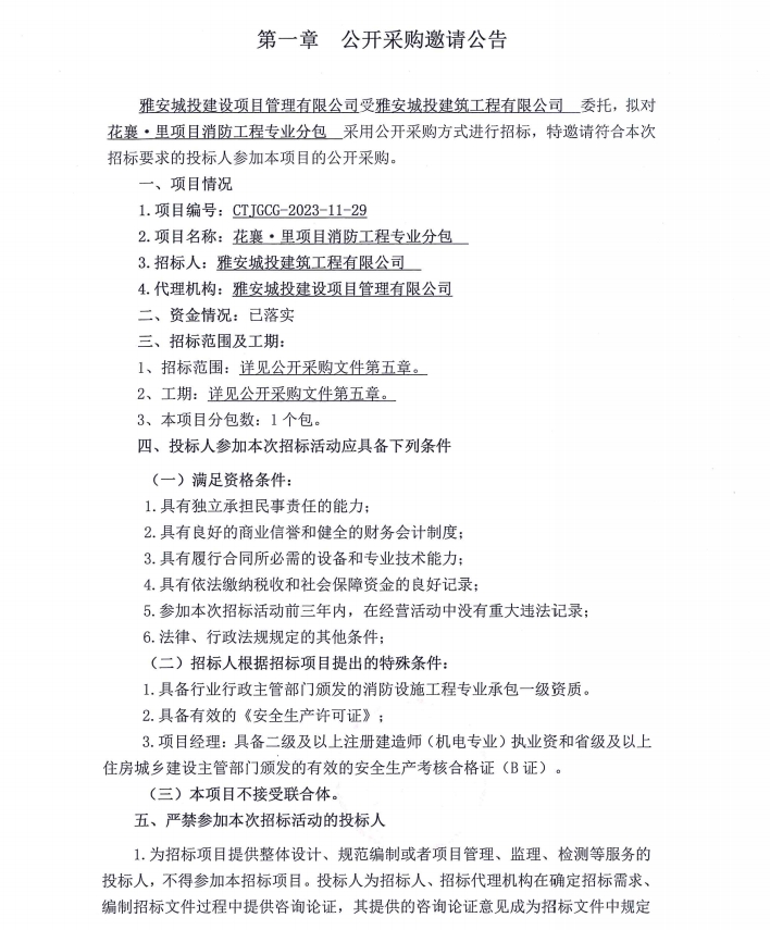 花襄·里項(xiàng)目消防工程專業(yè)分包公開采購(gòu)邀請(qǐng)公告
