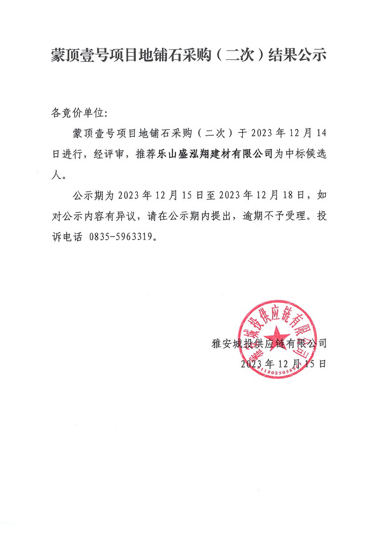 蒙頂壹號(hào)項(xiàng)目地鋪石采購(二次)結(jié)果公示