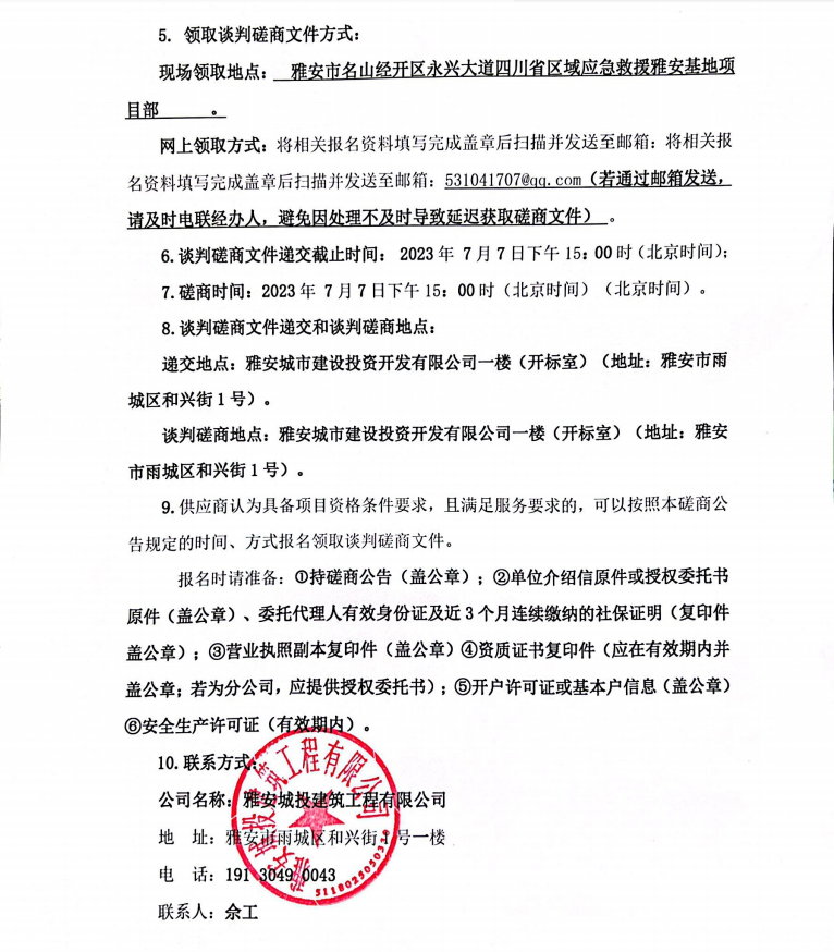 四川省區(qū)域應(yīng)急救援雅安基地項(xiàng)目新風(fēng)、中央空調(diào)采購(gòu)安裝談判磋商公告