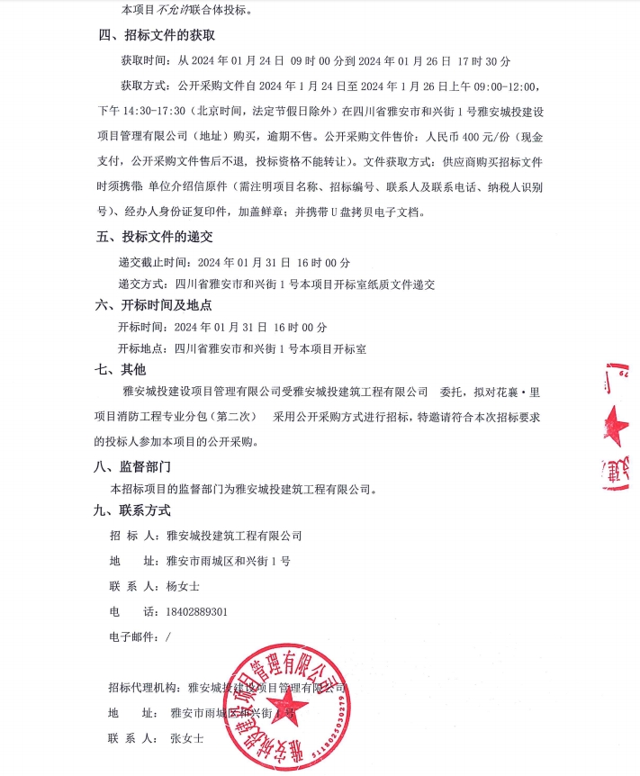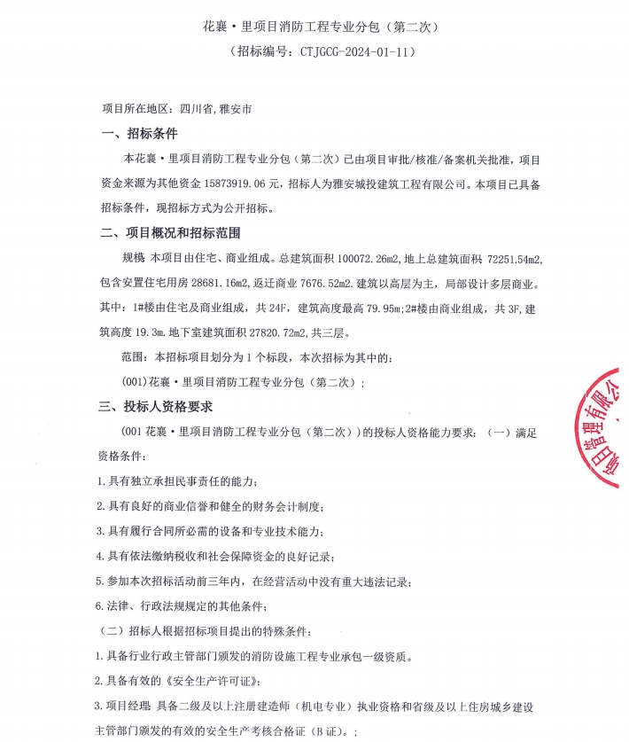 花襄·里項(xiàng)目消防工程專業(yè)分包(第二次)公告