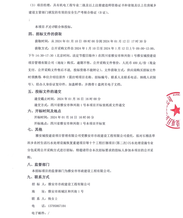 石棉縣草科鄉(xiāng)農(nóng)村生活污水處理設(shè)施恢復(fù)重建項(xiàng)目等十個(gè)工程打捆項(xiàng)目(第二次)污水處理設(shè)施專(zhuān)業(yè)分包采購(gòu)公告