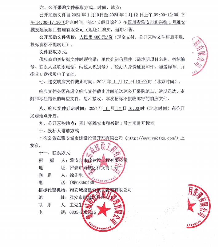 雅安市市政建設工程有限公司市政公用工程施工總承包升壹級資質(zhì)提升咨詢服務采購項目公開采購邀請公告