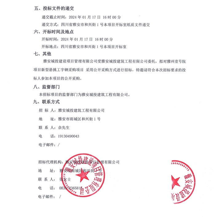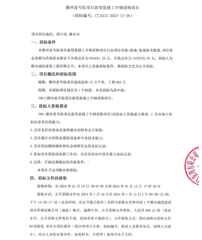 雅州壹號院項目新型懸挑工字鋼采購項目公告