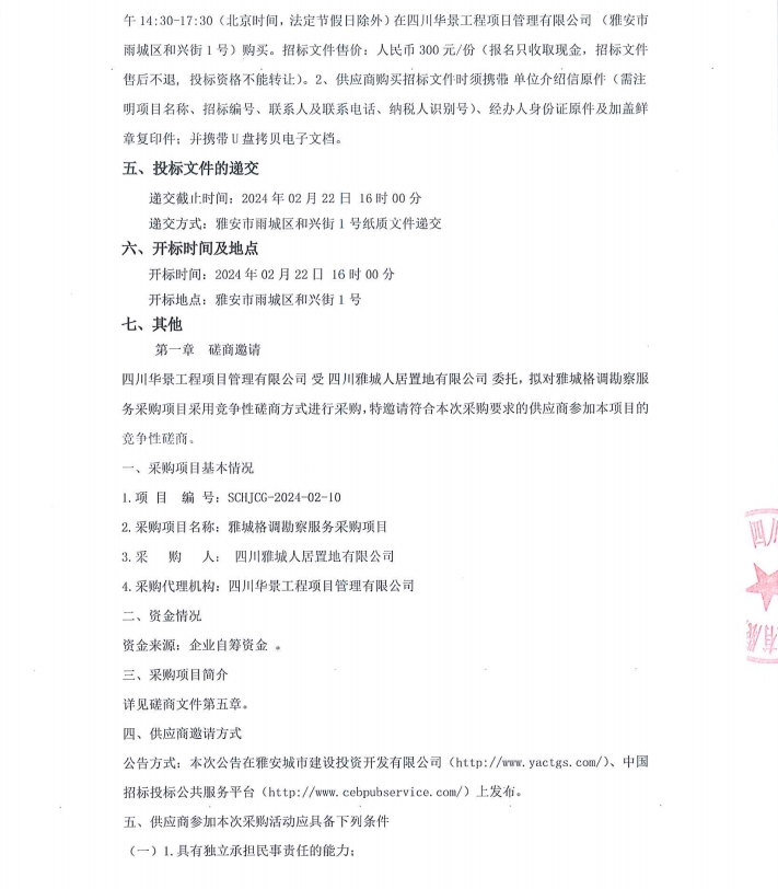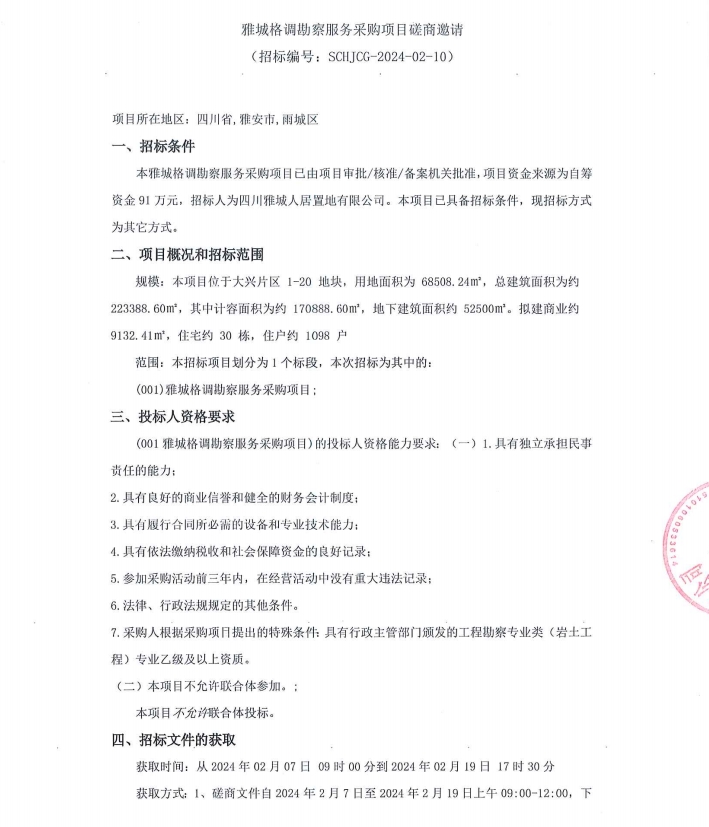 雅城格調(diào)勘察服務(wù)采購項目磋商邀請公告