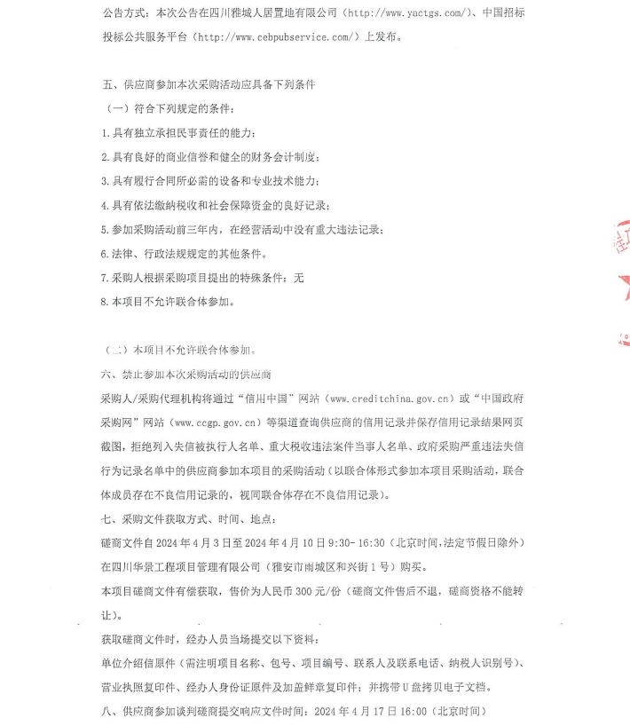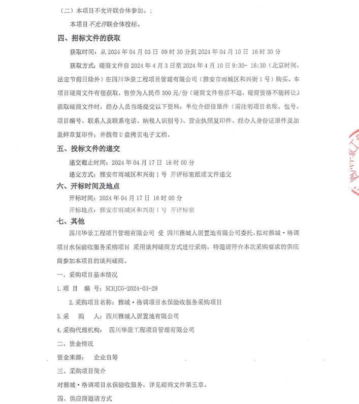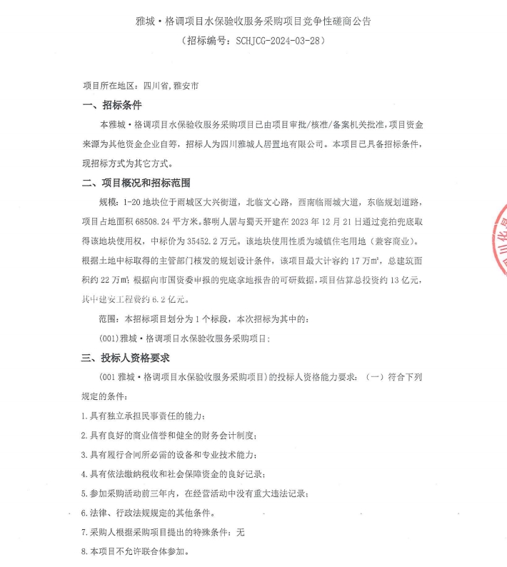 雅城·格調項目水保驗收服務采購項目競爭性磋商公告