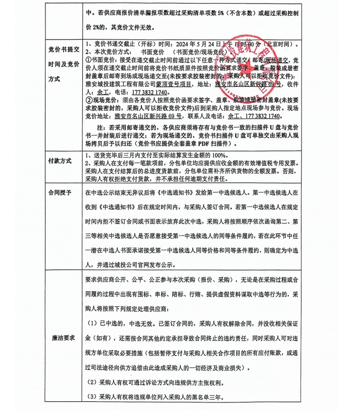 蒙頂壹號(hào)項(xiàng)目總坪輔材采購(gòu)競(jìng)價(jià)公告