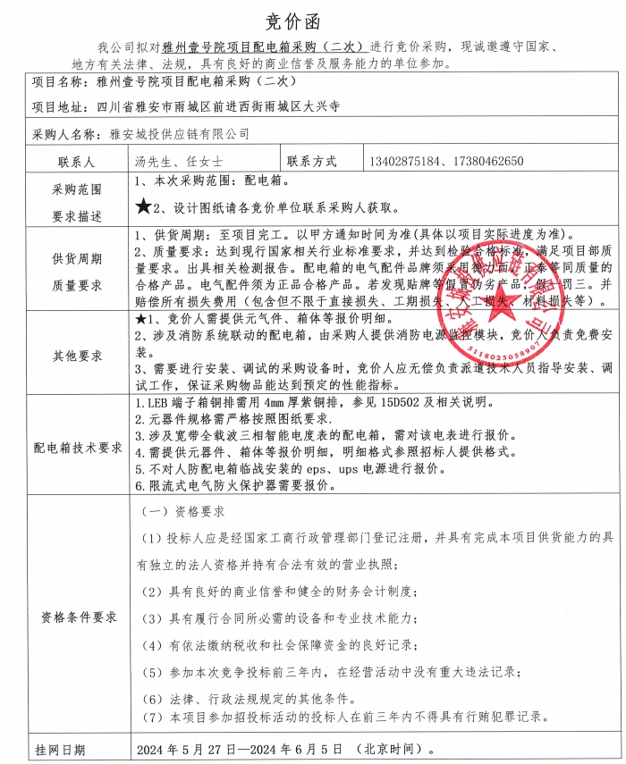雅州壹號(hào)院項(xiàng)目配電箱采購(gòu)(二次)競(jìng)價(jià)公告