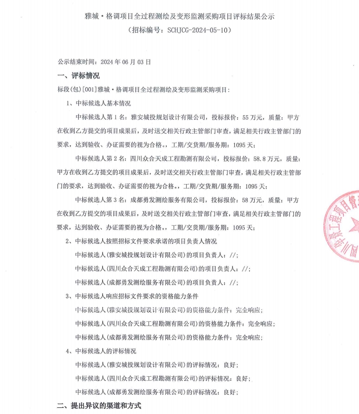 雅城·格調(diào)項(xiàng)目全過程測繪及變形監(jiān)測采購項(xiàng)目評(píng)標(biāo)結(jié)果公示
