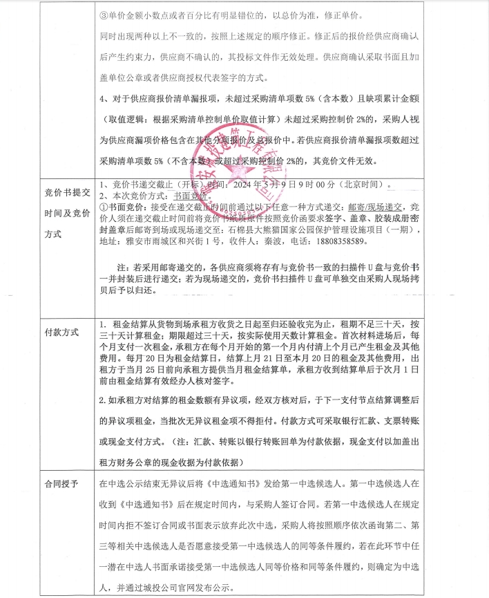石棉縣大熊貓國(guó)家公園保護(hù)管理設(shè)施項(xiàng)目(一期)管件材料租賃采購(gòu)競(jìng)價(jià)公告