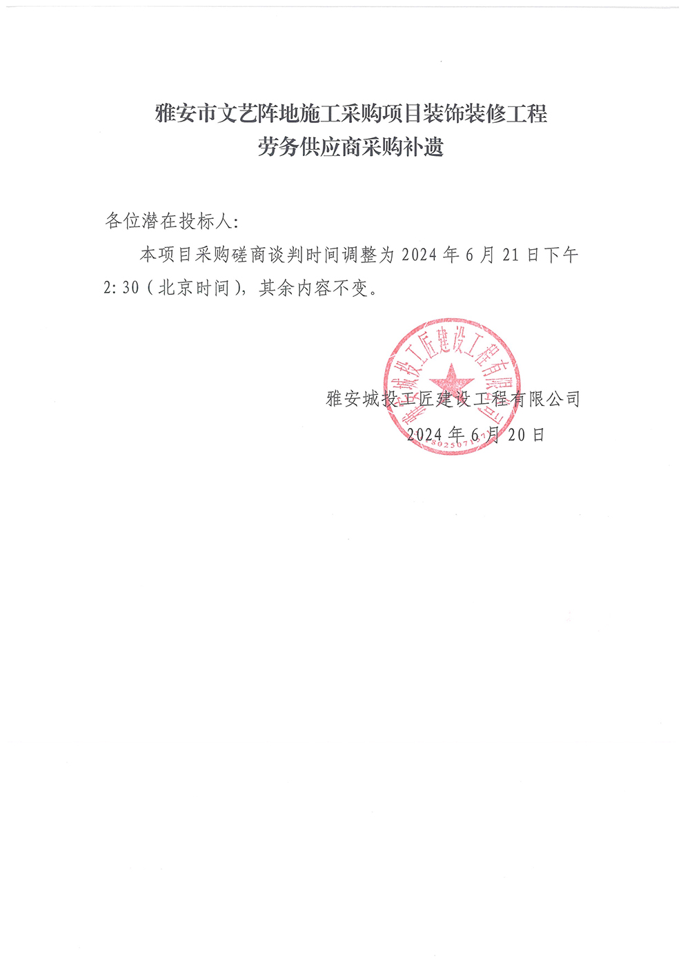 雅安市文藝陣地施工采購項(xiàng)目裝飾裝修工程勞務(wù)供應(yīng)商采購補(bǔ)遺
