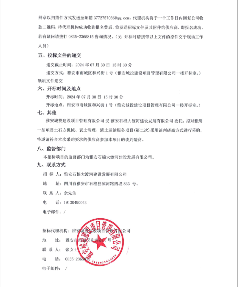 雅州一品項(xiàng)目土石方機(jī)械、表土清理、渣土運(yùn)輸服務(wù)項(xiàng)目(第二次)公告